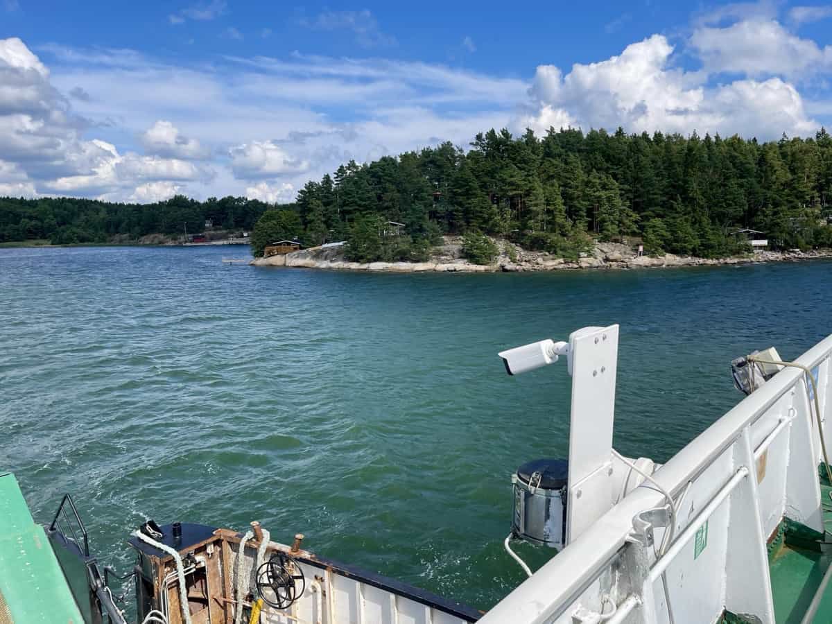 Wir setzen mit zwei Fähren über – zunächst auf die kleine Insel Pulkalla, dann weiter nach Storlandet. Die zweite Überfahrt zählt für uns zu den eindrucksvollsten der ganzen Reise: Ein Labyrinth aus Inseln und Wasseradern, glattgeschliffene Felsen wie schlafende Robben, dazwischen meist rote Holzhäuser mit weißen Fensterrahmen, still daliegende Wälder und das endlose Spiel von Licht, Wind und Wellen. Der Schärengarten zeigt sich hier von seiner sanften, fast meditativen Seite.