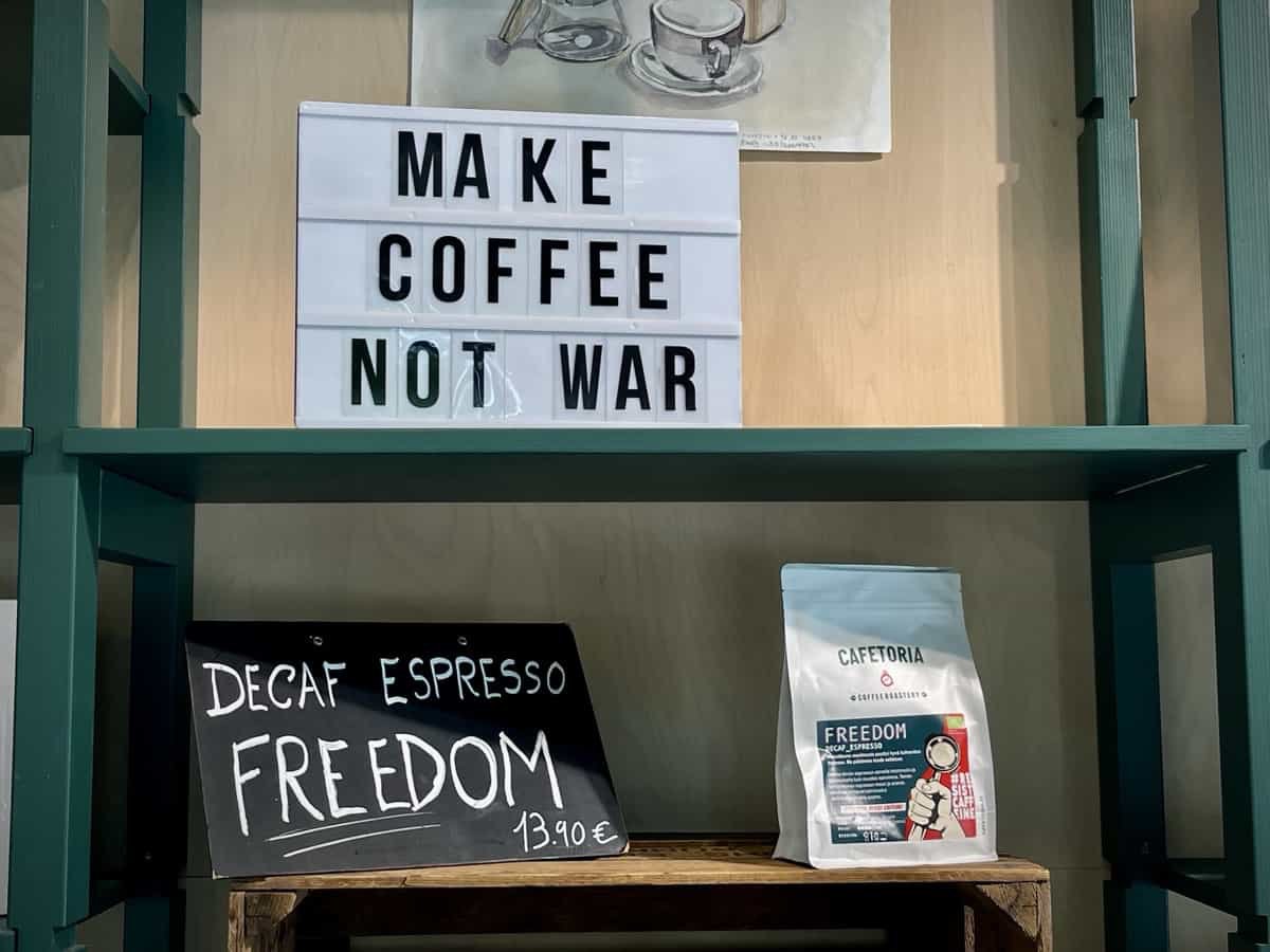 Stille Mahnung im Café - so aktuell in diesen Zeiten