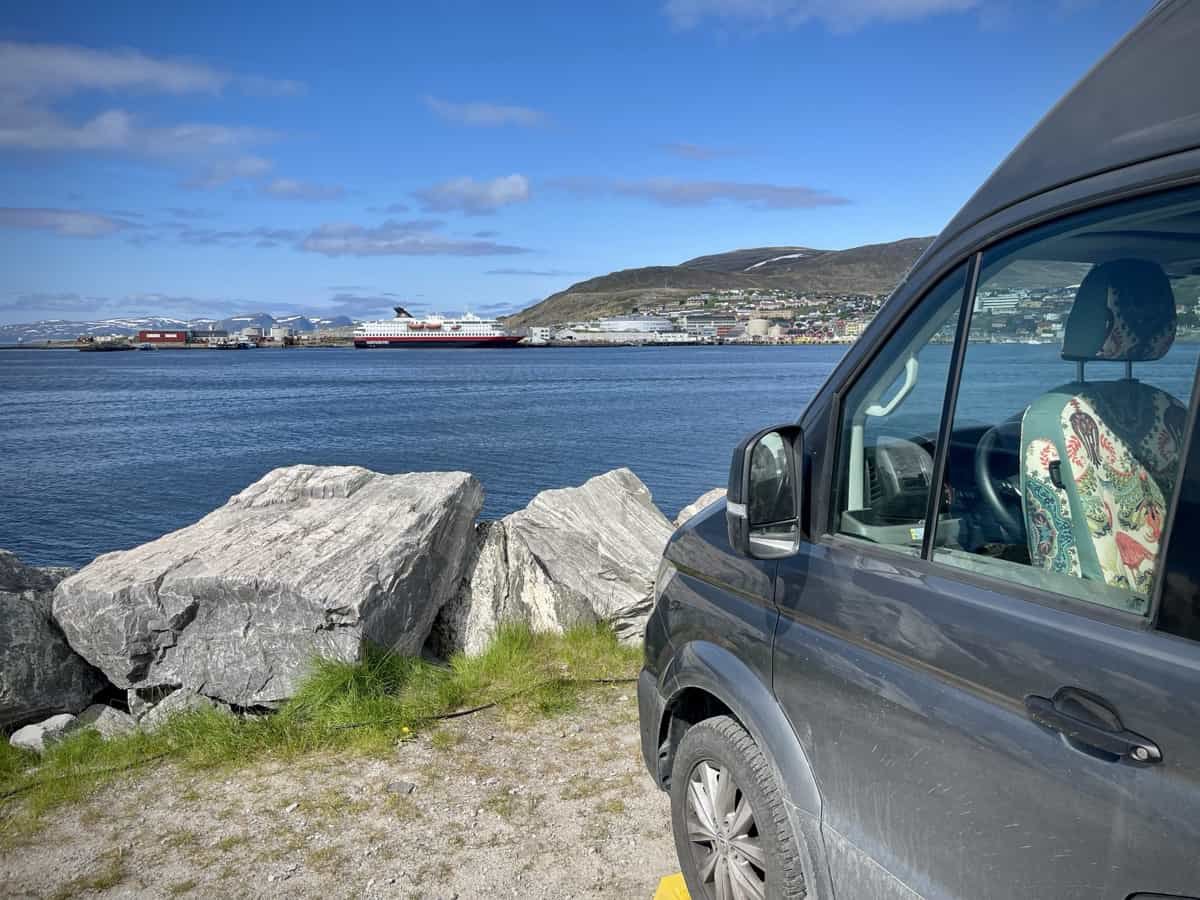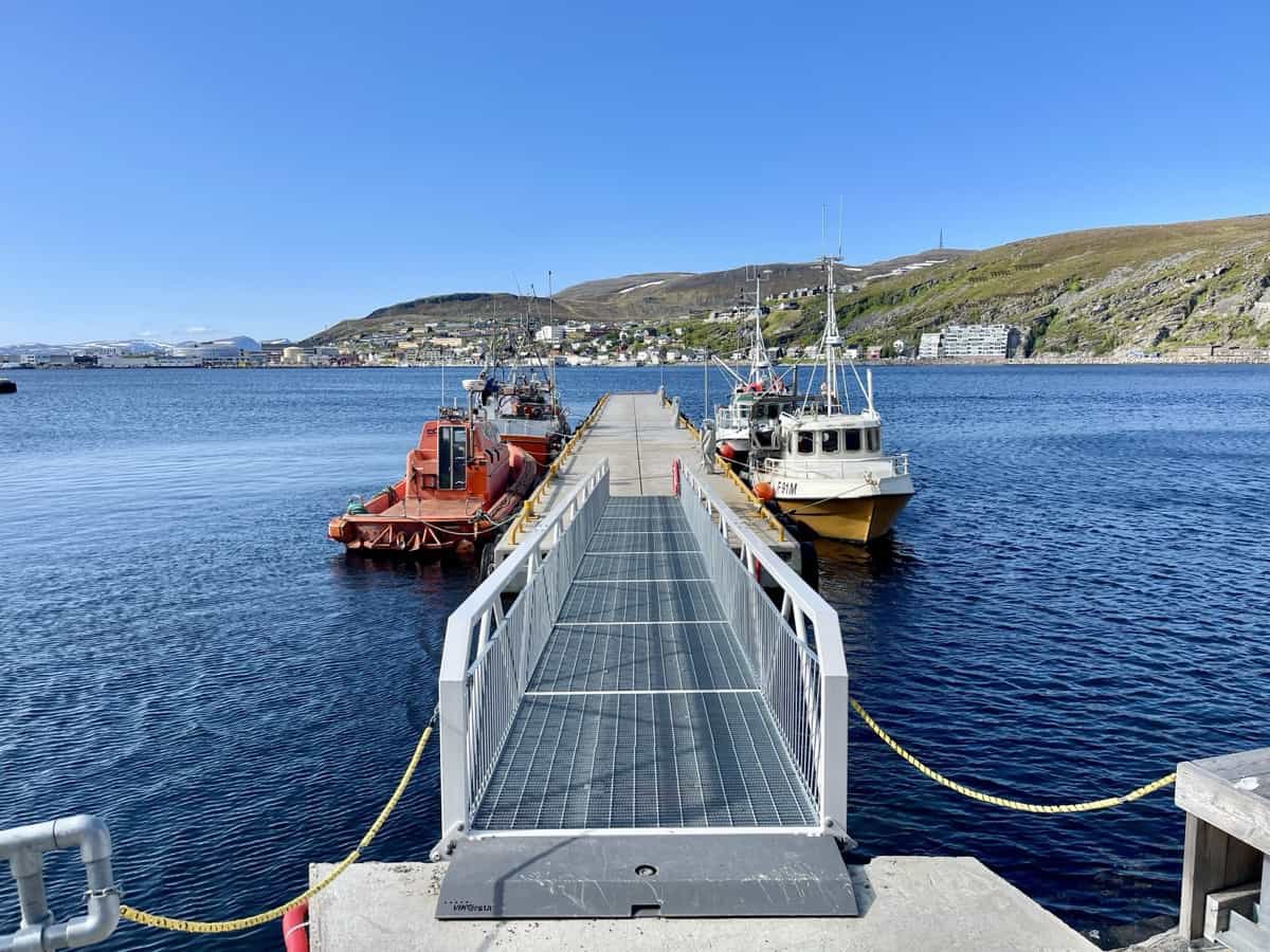 Dann liegt es vor uns: Hammerfest – für mich ein Sehnsuchtsort seit Jugendtagen. Damals wollte ich mit dem Fahrrad hierher fahren, bis an den Rand der Welt; heute geht das nicht mehr wegen meiner morschen Knochen. Hammerfest teilt das Schicksal vieler nordnorwegischer Orte: 1944 fast vollständig zerstört von der deutschen Wehrmacht im Zuge der „Verbrannten Erde“-Taktik. Heute ist die Stadt der nördlichste eisfreie Hafen Europas, abgesehen von Murmansk. Der Wiederaufbau in den 1950er und 60er Jahren hat ihr ein modernes, teils funktionales Gesicht verliehen – aber die Lage, direkt am Nordmeer, bleibt spektakulär.