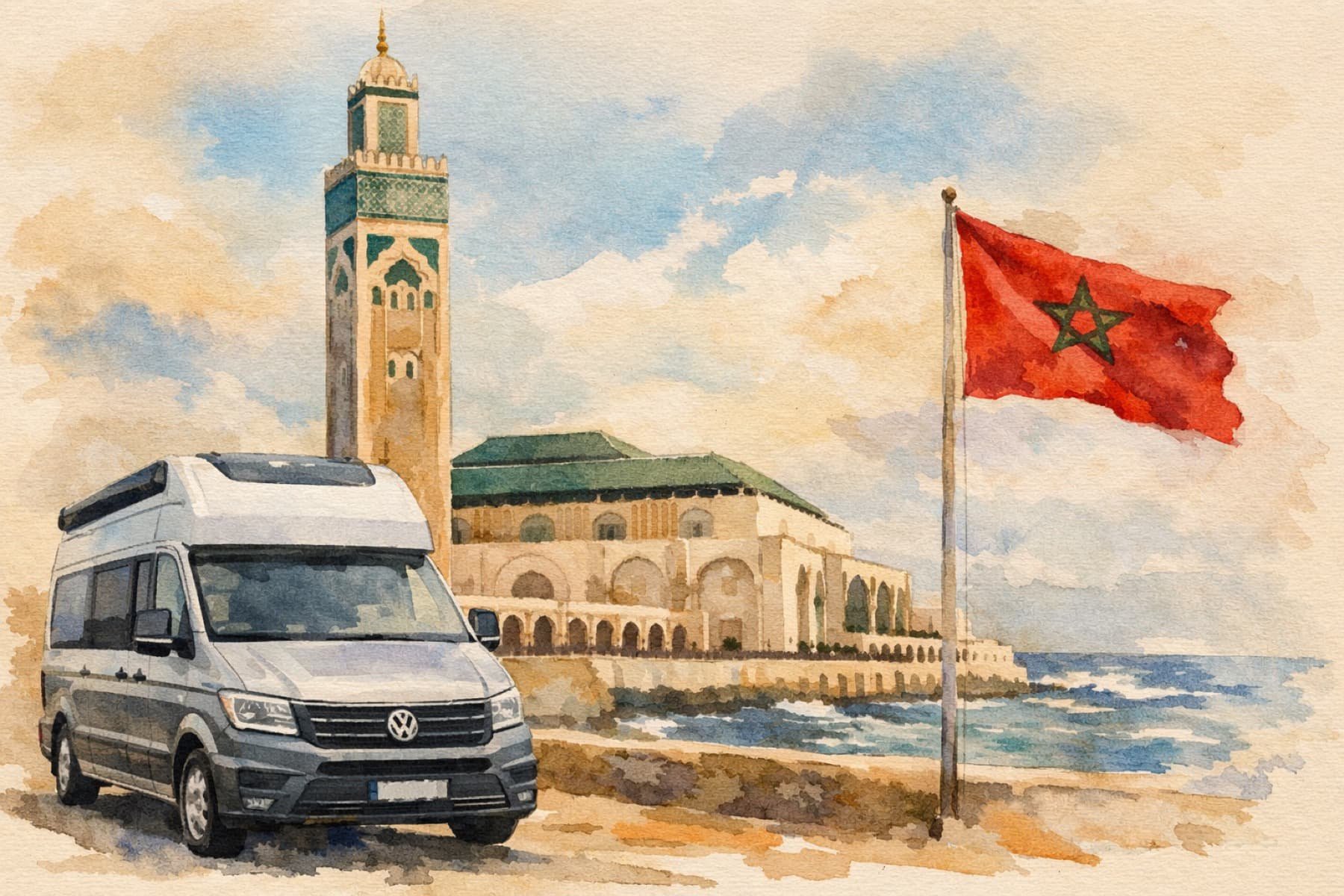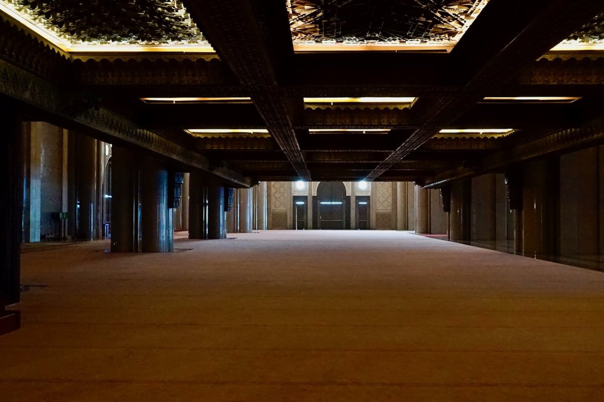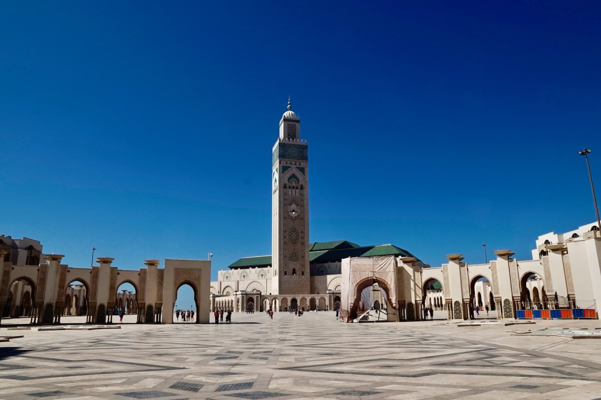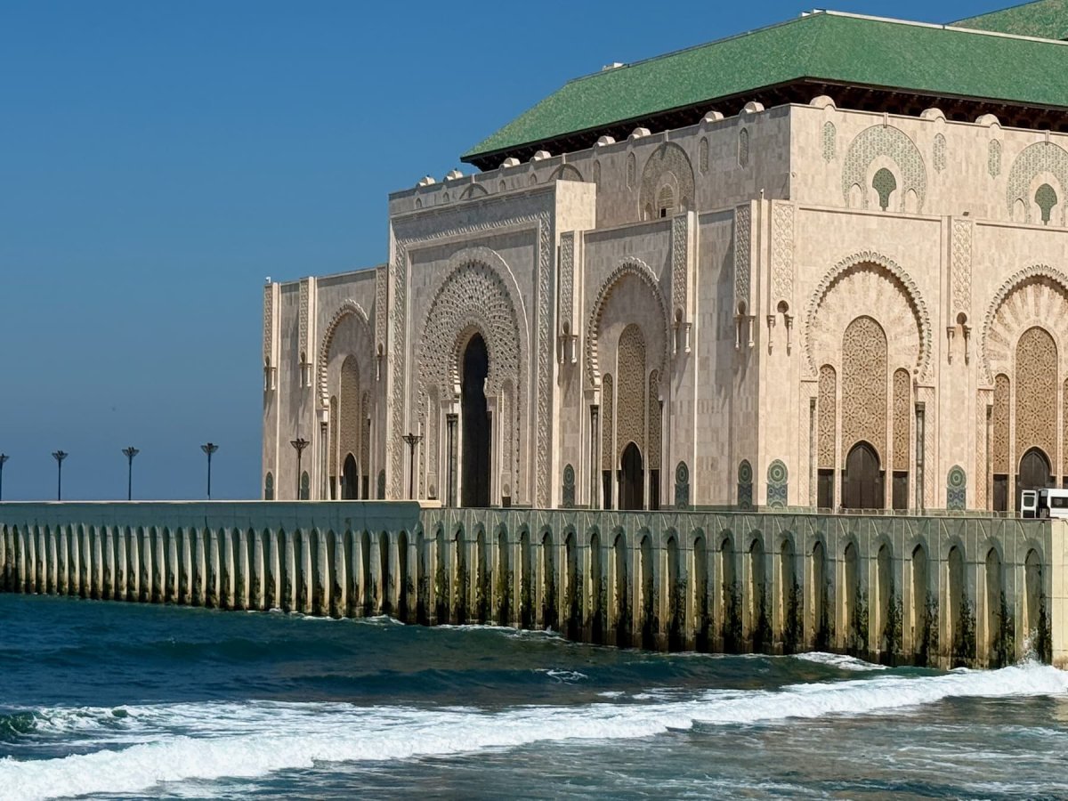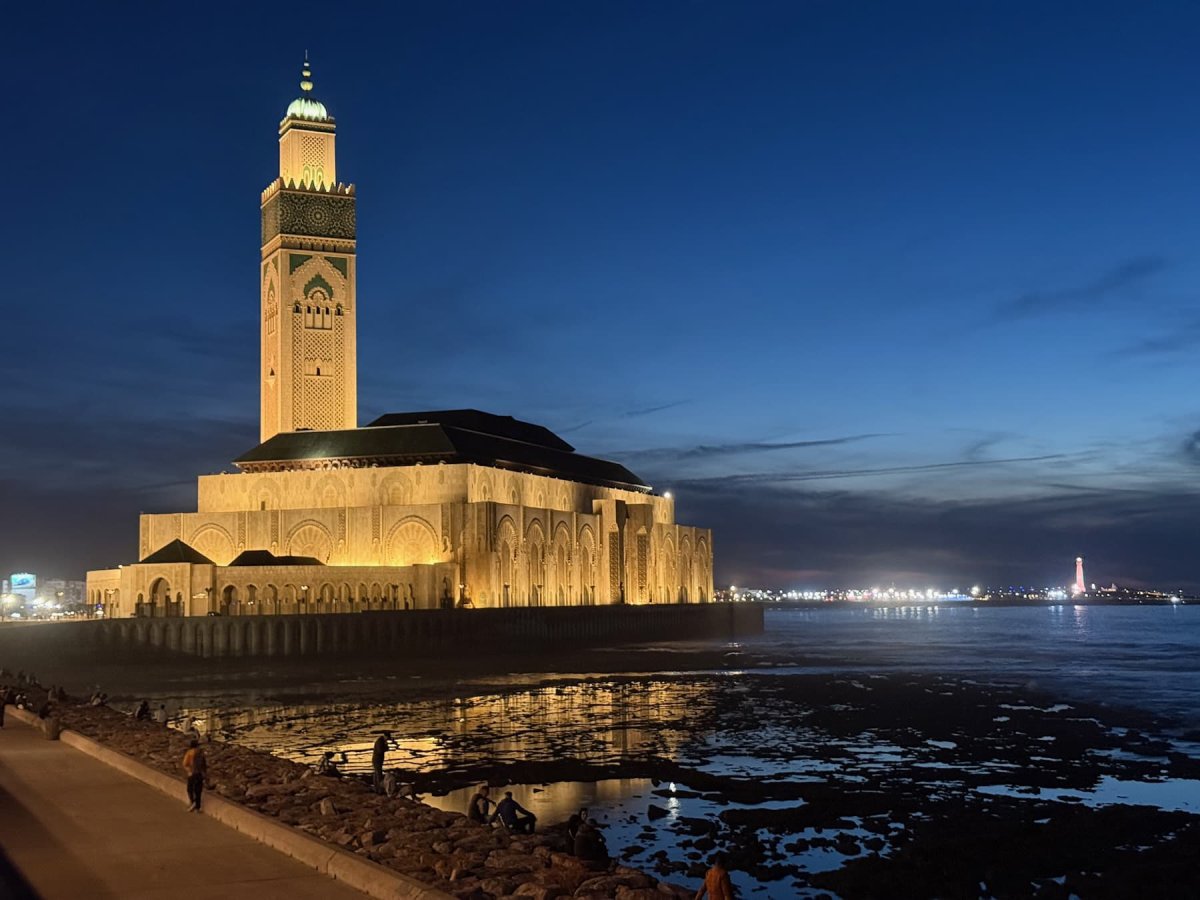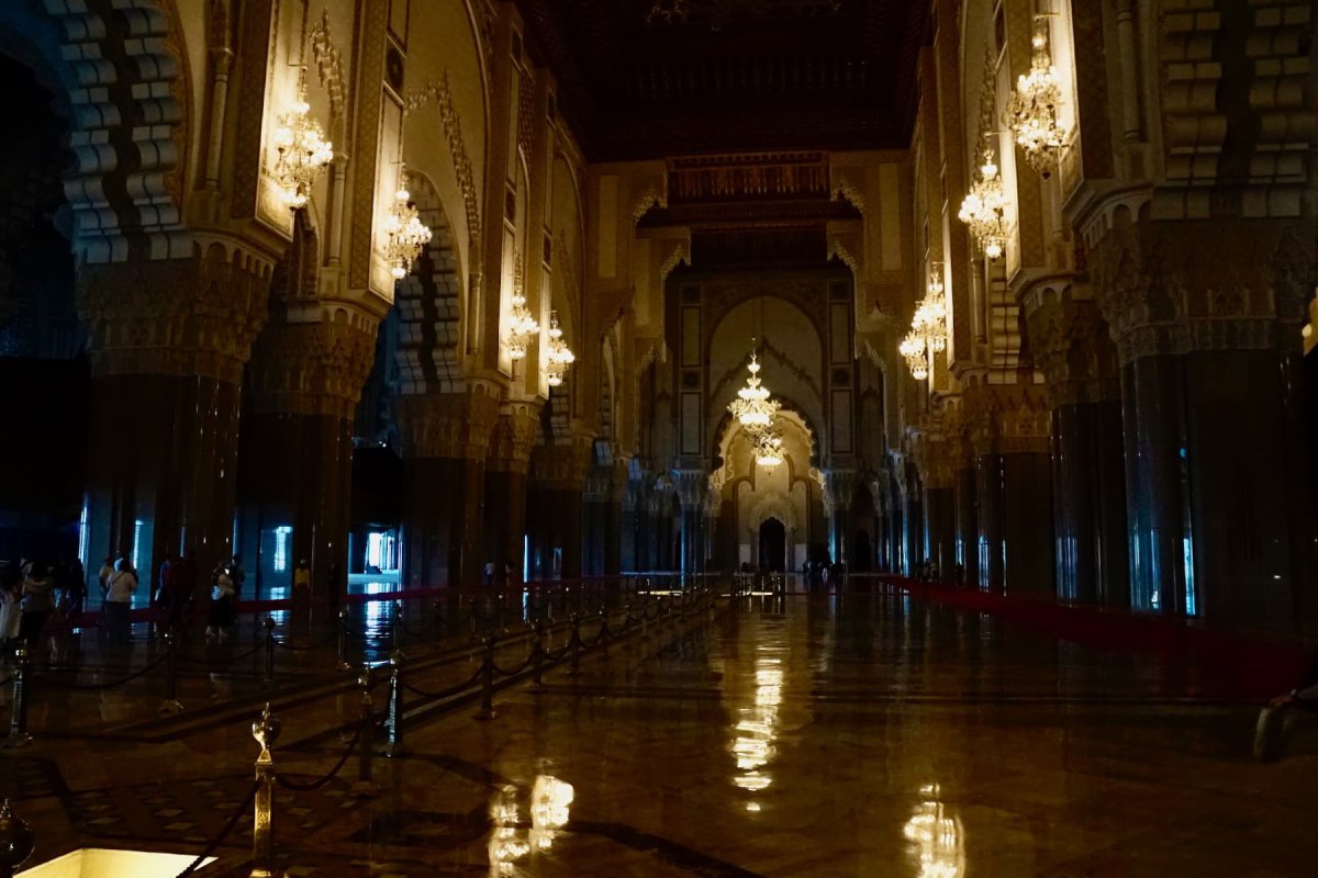 Besonders beeindruckend ist nicht nur die Größe, sondern die Lage der Moschee. Ein Teil von ihr wurde buchstäblich über dem Meer errichtet. Bei starkem Wellengang schlagen die Wellen gegen die Mauern – ein bewusst gewähltes Bild: Gottes Thron auf dem Wasser, wie im Koran beschrieben. Nachts erstrahlt die Moschee beleuchtet am Atlantik und wirkt fast unwirklich ruhig.