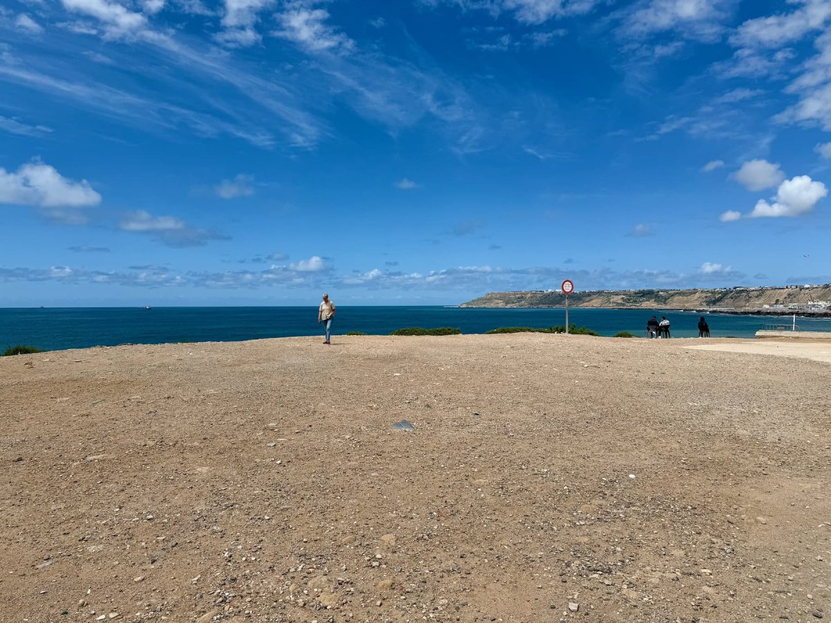 Letztendlich fanden wir unseren Platz oben auf den Klippen mit Blick auf den Atlantik. Von hier aus wirkte Safi plötzlich harmonischer – die Stadt, das Meer und der Hafen in der Ferne. Es war kein klassisches Highlight, aber genau deshalb wird es uns in Erinnerung bleiben.