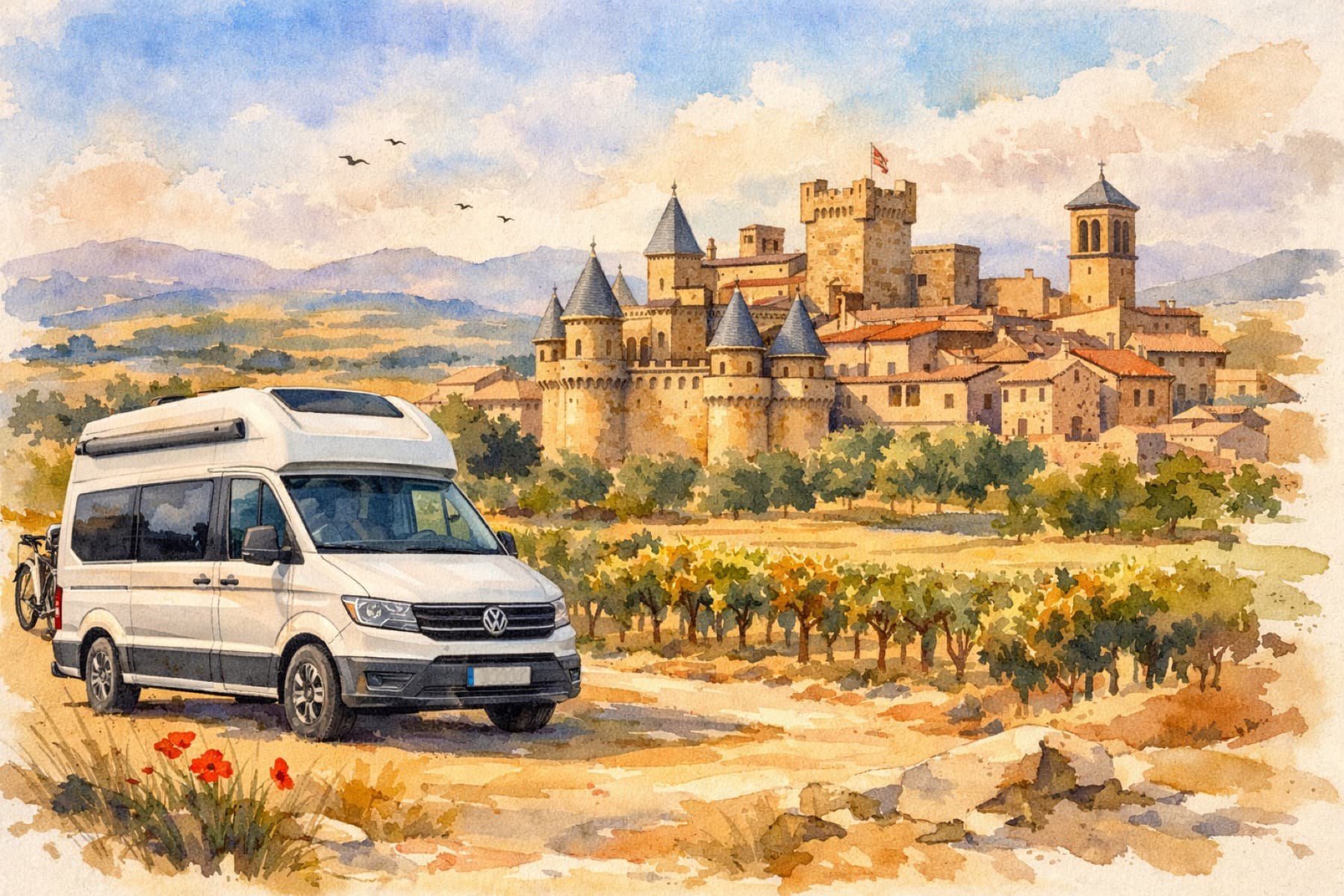 Am Abend erreichen wir Olite, ein charmantes Städtchen in der Region Navarra, das vom Tourismus weitgehend unberührt geblieben ist. Olite ist kein Muss, sondern eher ein Zwischenstopp, der einen bleibenden Eindruck hinterlässt. Die perfekte Mischung aus Geschichte, Atmosphäre und einer unaufdringlichen Schönheit macht es zu einem besonderen Ort. Einst Residenz des Königs von Navarra, zeugt der Palast von dieser glorreichen Vergangenheit. Abseits des Palastes präsentiert sich Olite bodenständig: enge Gassen, Natursteinhäuser, kleine Plätze und gemütliche Cafés. Alles wirkt ruhig, ein wenig verschlafen, aber angenehm unaufgeregt. Olite drängt sich nicht auf, sondern lädt zum Verweilen ein.